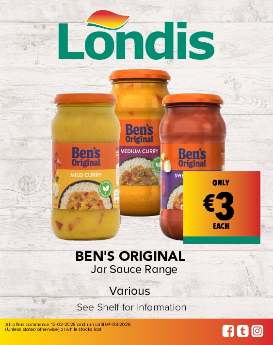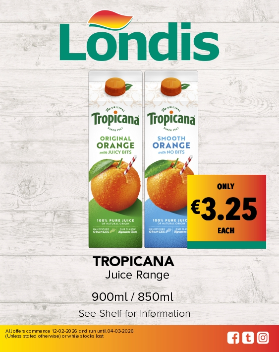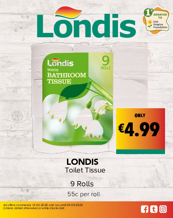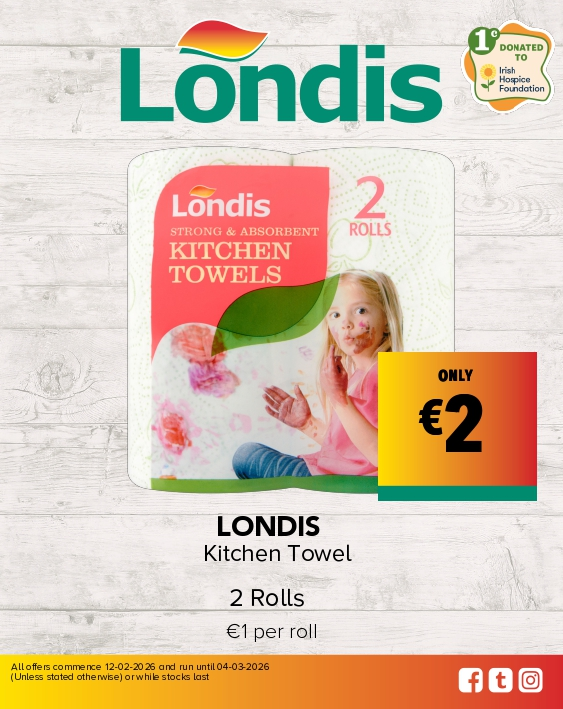 Browse Our Store Gallery Sponsoring Ireland's Fittest FamilyLondis sponsors Ireland’s Fittest Family s12 Read Article Order OnlineFind your nearest store and order in a few clicks! londisonline.ie Special OffersView the latest Londis offers. View Offers NewsGet the latest news from Londis Latest News Wine CellarDiscover our wines Visit Wine Cellar Londis CareersView our latest job opportunities Careers Nationwide OffersView the latest Londis offers available Nationwide from 12.02.26 to 04.03.26 View Offers Catalogue Follow us on Social Check out what’s happening now at Londis! Follow us on @londisireland